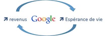 - A long terme, il peut l’augmenter en fournissant des solutions de santé personnalisées (directement ou indirectement avec l'industrie pharmaceutique ). Google peut traverser les causes impactant leur espérance de vie (activité, suivi du taux de glycémie pour les diabètes et l'ADN - 23andMe, Calico… ) .