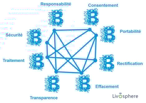 Le « Privacy by design » (art 25 - Protection des données dès la conception et protection des données par défaut) est directement intégré dans la blockchain car les données sont chiffrées et hashées.