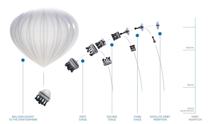 Pour lancer ces nano-satellites, on peut utiliser des lanceurs type Space X mais il y a beaucoup plus ingénieux et moins cher ... Zero 2 Infinity offre de décomposer leur mise en orbite en deux phases. La première est un ballon à hélium qui va élever un mini-lanceur (intégrant votre nano-satellite) jusqu'à 40 km (stratosphère).
