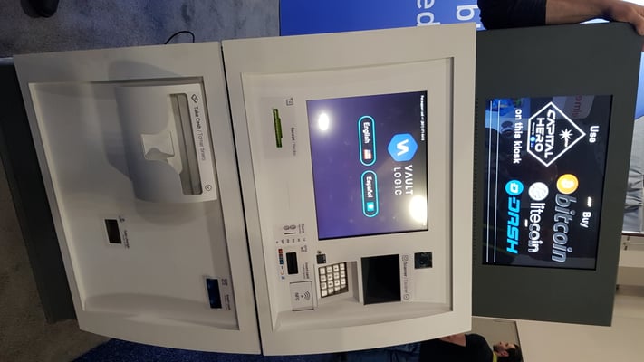 J'ai mis quelques photos de produits utilisant la blockchain : utilisation avec l'IoT (Hitech One), un TPE (Xpos), un distributeur de billets convertissant crypto-monnaie en dollars, pare-feu WiFi sécurisé avec la blockchain (DevPriv), un Wallet d'Archos et en-dessous un constructeur chinois qui propose de vous payer en token le partage de votre puissance de calcul et votre capacité de stockage.