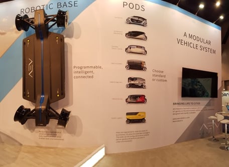 De nombreux nouveaux constructeurs rendent leurs véhicules modulaires avec un châssis autonome. La partie modulaire ("Pod")s'adapte en fonction des usages. (AEV Robotics).