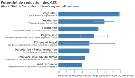 Le système alimentaire mondial contribue jusqu'à 30 % aux émissions mondiales totales de gaz à effet de serre (2007-2016), principalement à cause de l'élevage du bétail (14,5%), la culture du riz et l'épandage d'engrais.