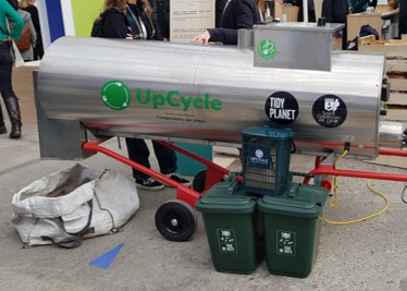 Upcycle propose un composteur destiné principalement aux restaurants d'entreprise ou d'écoles. à€ la différence des composteurs individuels, on peut aussi composter de la viande et du poisson. La matière doit rester 14 jours dans le composteur (qui est mécaniquement brassée toutes les 2h durant 2 min afin d'avoir un compost homogène) puis doit reposer 2 mois à l'extérieur.
