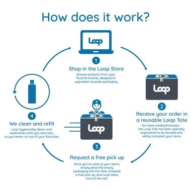 A l'image d'Amazon, Loop deviendrait une plateforme de vente intégrant un circuit complet (conditionnement, transport, lavage, remplissage et réutilisation qui pourraient être réalisés par des acteurs externes) à l'image de la MarketPlace d'Amazon.