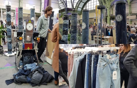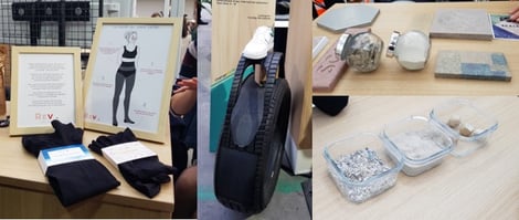 Plusieurs startups montraient comment ils recyclaient leurs propres produits dans de nouveaux produits. Mud Jeans (« Circular Jeans » ), utilise à 40% des jeans recyclés pour fabriquer leurs jeans.