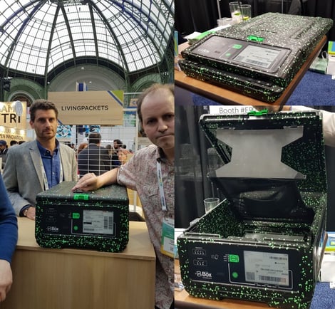 Living Packets, qui était présent au CES Las Vegas ainsi qu'à Viva Tech en 2018 (avec une solution beaucoup moins évoluée) a une démarche similaire en proposant la location d'un emballage connecté réutilisable et repliable pour un coût de 2€ mensuel à destination des sites e-Commerce. Il possède en plus un système de géolocalisation autonome et un écran e-Ink (qui n'a pas besoin d'alimentation électrique pour afficher mais pour changer d'affichage).