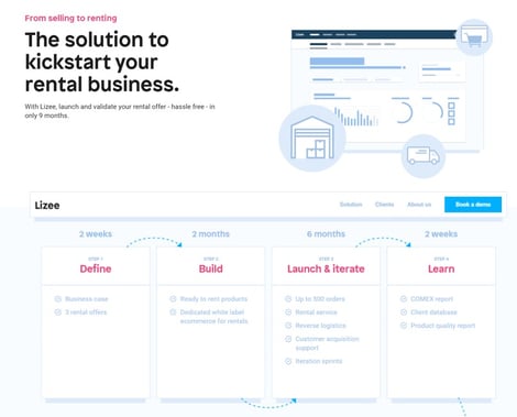 Lizee est une marque blanche de la location pour des articles utilisés sur de courtes périodes principalement. Ils proposent d'adopter une démarche progressive sur des produits spécifiques. Ils facilitent toutes les démarches de l'entreprise (facturation, remise à neuf, assurance, logistique, entreposage...). Décathlon travaille avec eux notamment pour les produits fortement saisonniers (neige, skis...).