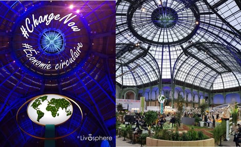Etienne Villotte souligne qu'il faut concevoir l'événement dès le départ comme écoresponsable avec des principes très simples : anticiper la réutilisation des dispositifs (démontage, stockage...), travailler sur les matériaux bruts, privilégier les vis, clous, agrafes par rapport à l'utilisation de colle pour que le matériel puisse être démonté puis réutilisé facilement. Pour mettre en valeur la scénographie, ils ont intégré dans les grilles représentant chaque pôle des éléments distinctifs, verres recyclables pour la partie éco-emballage, tissus pour Sustainable Fashion ... avec l'aide aussi de nombreux bénévoles qui ont imaginé et créé ces dispositifs.