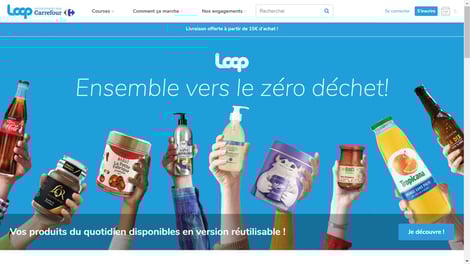 Lorsque vous commandez des produits sur Loop (en partenariat avec Carrefour), vos produits sont emballés dans un conditionnement réutilisable et lavable conçu par Loop en concertation avec les industriels et déposé dans un gros sac pliable, tout cela en échange du paiement d'une consigne.