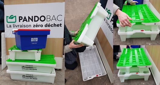Pandobac propose aux entreprises de louer ses bacs (plastique PEHD recyclable) entre 2 et 5€ par mois plus 0,3€ pour le lavage du bac versus un coût unitaire et à usage unique de 0.60€ pour le carton, 0.80€ pour les cagettes en bois et 1.50€ pour le polystyrène. Leurs bacs ont été conçus pour facilement s'imbriquer lorsqu'ils sont vides et s'empiler lorsqu'ils sont remplis. L'intégration d'un QR Code facilite le suivi des bacs.
