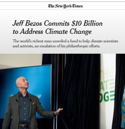 Récemment Jeff Bezos a constitué un fonds de 10 milliards de dollars pour faire face au réchauffement climatique destiné à des scientifiques, ONG, activistes.