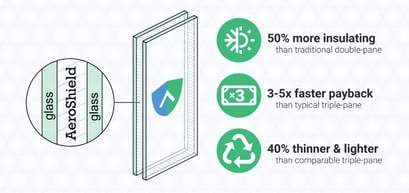Aeroshield a trouvé une solution pour isoler les fenêtres avec une efficacité 50 % supérieure aux fenêtres à double vitrage en remplaçant l'air par un aérogel. Il serait aussi plus léger et moins épais qu'un triple vitrage.