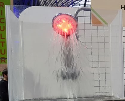 Joulia propose lui une douche qui utilise la chaleur de l'eau évacuée pour réchauffer l'eau froide propre et réduit donc la consommation d'eau chaude.