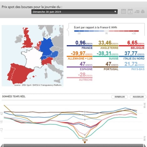 Le surplus de consommation peut être revendu au prix du marché (en France environ 1 cent € jusqu'à 5 cent € en cas de pic en hiver) ou donné à titre gratuit à Enedis (utile quand il arrive que l'électricité ait un prix négatif ;) ex: ci-contre sur base des prix Spot RTE )