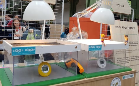 Il y a une technique plus simple pour réduire la température des bâtiments et moins utiliser les climatiseurs ... peindre les toits en blanc ce qui augmente leur albedo et donc leur pouvoir réfléchissant.
